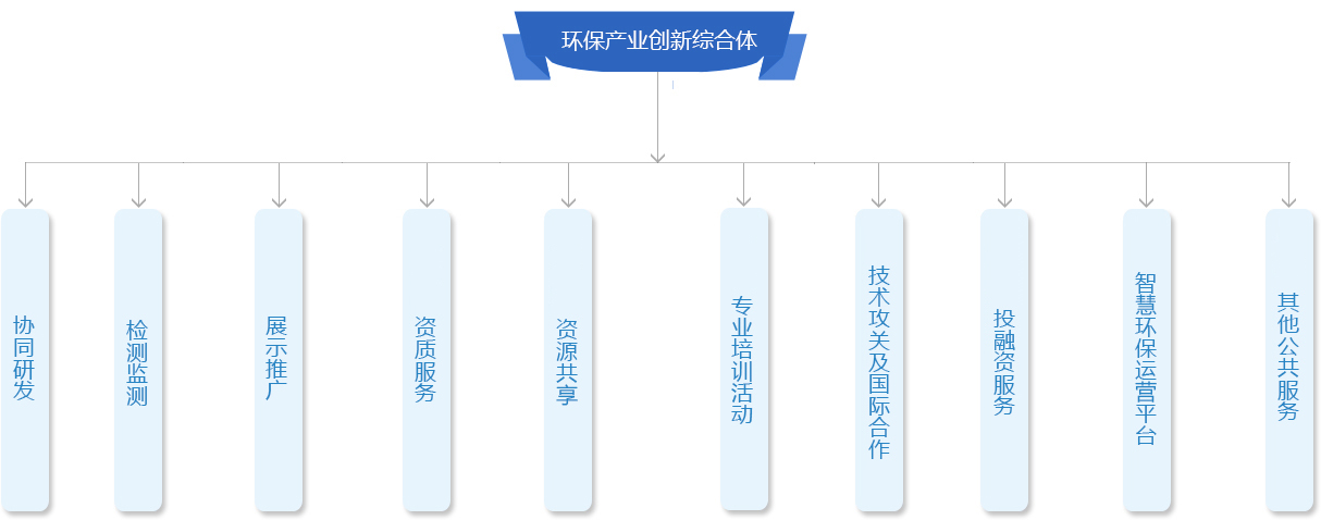 中電環(huán)保發(fā)揮行業(yè)龍頭作用,聯(lián)合“政產(chǎn)學(xué)研金才”綜合資源,打造“環(huán)保產(chǎn)業(yè)創(chuàng)新綜合體”,包括:“二區(qū)、三聯(lián)盟、三中心、七功能”。 二區(qū):國家級(jí)環(huán)保服務(wù)業(yè)集聚區(qū)、江蘇省級(jí)生態(tài)環(huán)境產(chǎn)業(yè)創(chuàng)新集聚區(qū)。 三聯(lián)盟:環(huán)保產(chǎn)業(yè)技術(shù)創(chuàng)新聯(lián)盟(科技部1個(gè)、生態(tài)環(huán)境部1個(gè)、南京市1個(gè)),同時(shí)成立黨建聯(lián)盟。 三中心:環(huán)保產(chǎn)業(yè)創(chuàng)新中心暨創(chuàng)新公司。分別聯(lián)合南大、東大、河海等及其人才團(tuán)隊(duì)、省環(huán)科院、地方政府,通過股權(quán)緊密合作,按照“中心+公司”模式建設(shè)新型研發(fā)機(jī)構(gòu)。 以“產(chǎn)業(yè)+平臺(tái)”雙翼模式發(fā)展產(chǎn)業(yè),以市場(chǎng)需求導(dǎo)向研發(fā),促進(jìn)科技創(chuàng)新、人才創(chuàng)業(yè)、成果轉(zhuǎn)化和產(chǎn)業(yè)集聚,孵化高科技企業(yè),賦能產(chǎn)業(yè)創(chuàng)新發(fā)展,打造環(huán)保支柱產(chǎn)業(yè)。