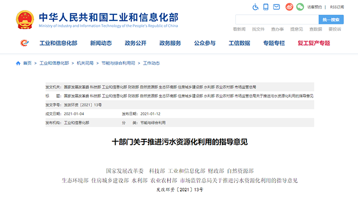 近日,國家發(fā)展改革委聯(lián)合科技部、工業(yè)和信息化部、財政部、自然資源部、生態(tài)環(huán)境部等十部門共同印發(fā)了《關(guān)于推進污水資源化利用的指導(dǎo)意見》(以下簡稱《指導(dǎo)意見》),對全面推進污水資源化利用進行了部署。
