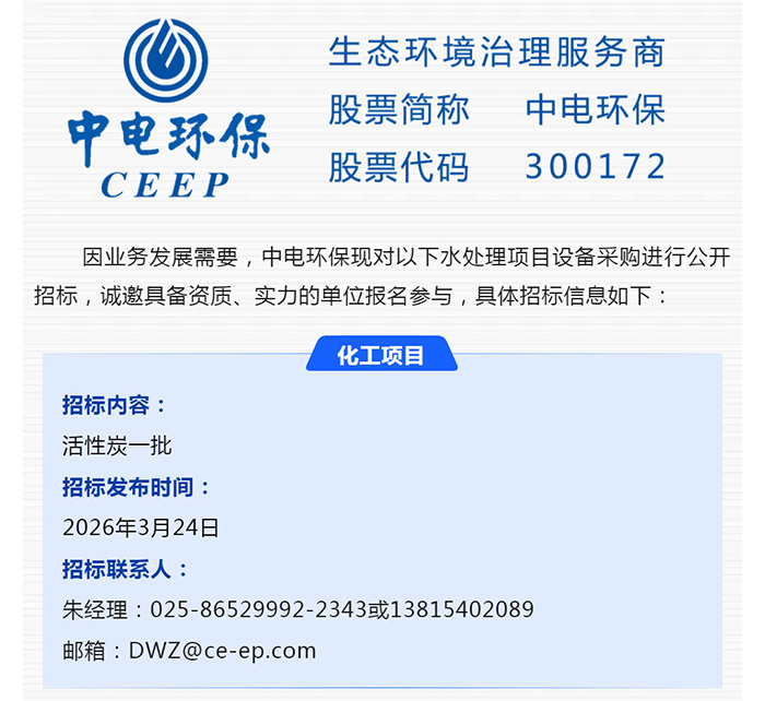 中電環(huán)保股份有限公司是南京市首家環(huán)保上市公司(股票簡稱:中電環(huán)保,股票代碼:300172),南京環(huán)保產業(yè)協(xié)會會長單位,國家級聯(lián)盟理事長單位,是生態(tài)環(huán)境治理服務商,主營(3+1):水務、固危廢、煙氣治理及產業(yè)創(chuàng)新平臺,包括:工業(yè)水處理、污水處理及水環(huán)境綜合治理;固危廢土壤、污泥餐廚垃圾處理;煙氣及VOCS治理;智慧環(huán)保;高端裝備等。