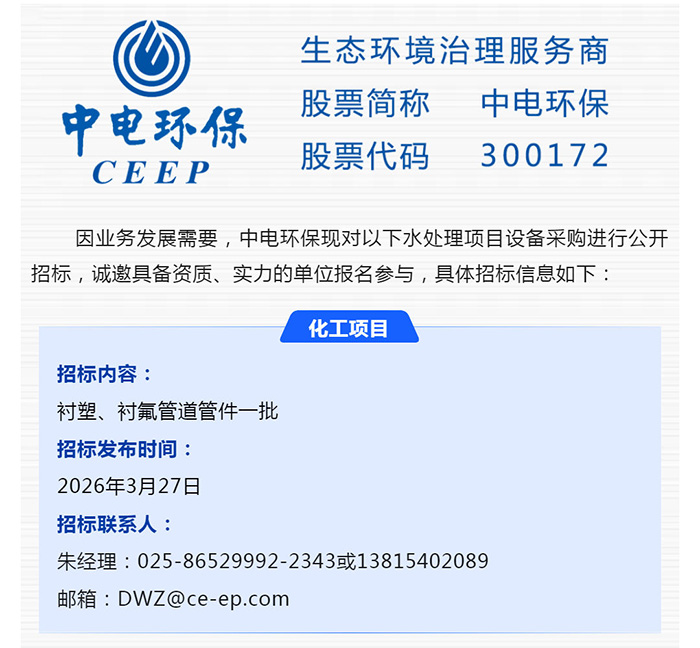 【招標(biāo)-26-09期】中電環(huán)保誠(chéng)邀參與:水處理項(xiàng)目設(shè)備采購(gòu)公開(kāi)招標(biāo)