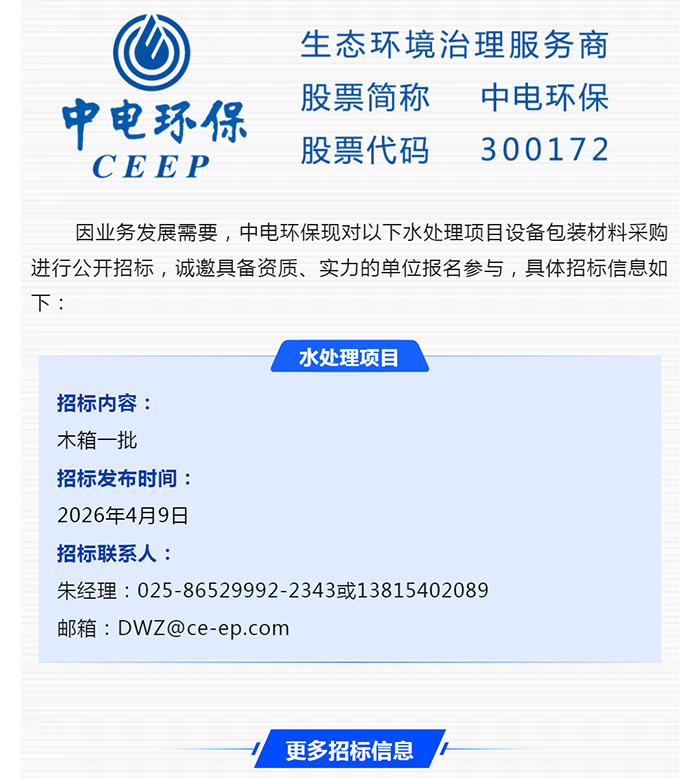 【招標(biāo)-26-10期】中電環(huán)保誠(chéng)邀參與:水處理項(xiàng)目設(shè)備包裝材料采購(gòu)公開(kāi)招標(biāo)