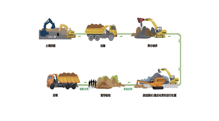土壤修復(fù)是指利用物理、化學(xué)和生物的方法轉(zhuǎn)移、吸收、降解和轉(zhuǎn)化土壤中的污染物,使其濃度降低到可接受水平,或?qū)⒂卸居泻Φ奈廴疚镛D(zhuǎn)化為無害的物質(zhì)。主要的土壤修復(fù)技術(shù)為固化/穩(wěn)定化技術(shù)、土壤淋洗技術(shù)、多相抽提技術(shù)、異位化學(xué)氧化/還原技術(shù)等。